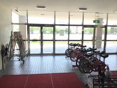 昼休みです。いつもは人気の一輪車も今日はひっそりと並んでいる感じ。外はピカピカの晴天ですが、