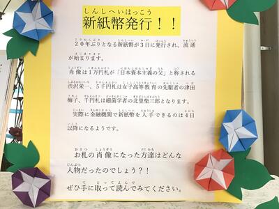 新紙幣発行!さすが、時代の先端を行っていますね。図書支援の先生、ありがとうございます。