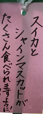 スイカ・シャインマスカット好き、ここに書いてしまう潔さが素敵です。字の感じではこれを書いたのは大人かも・・・