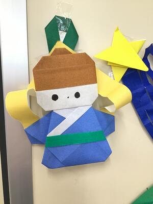 教室の入口には、ご覧のような七夕飾りがあります。面白くながめていると、