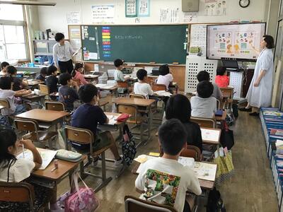 今日は、3年生の外国語活動に潜入しております。ノリがいいですね。よく手が挙がります。児童目線の教室の様子をお楽しみください。