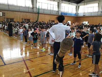 終業式の後に、児童指導主任から夏休みの生活についてお話がありました。