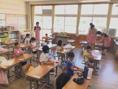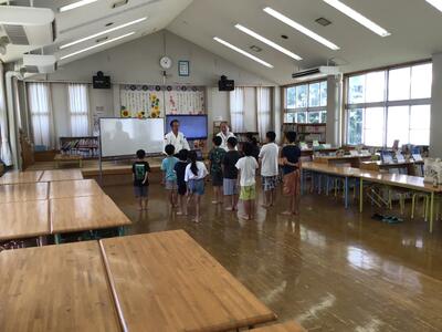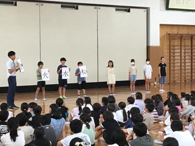 子供たちは、うなづいたり手を挙げたりしながら聞いていました。