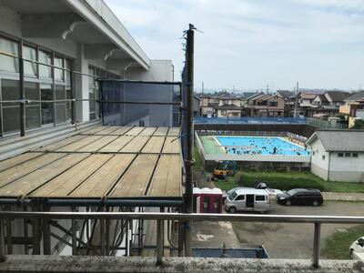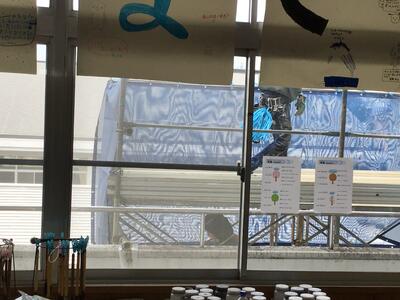 教頭先生からは夏休み中の工事についての話がありました。実は、トイレの改修工事が昨日から始まっています。