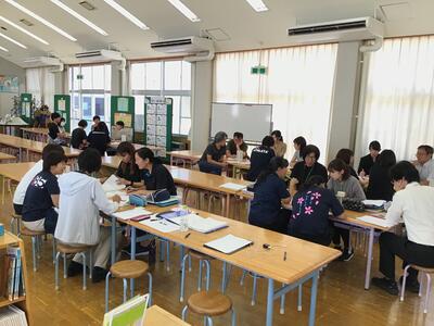 子供たちのいない学校では、職員研修が行われています。今回は、「インクルーシブ教育」「QUの活用」が大きなテーマになります。