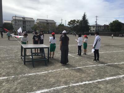 「今日の運動会は、皆さんが前向きに自分から活動して、みなさんの手で作り上げた運動会です。6年生はリーダーとして下級生をリードして、生き生きと活動しました。5年生も高学年としての責任をしっかりとはたしてくれました。その姿は、とても気持ちよく頼もしく感じられました。
