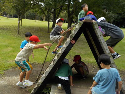 広いですねぇ。走るだけで楽しい場所ですが、いろいろな遊具も工夫次第でさらに楽しめます。