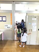 係の先生方に連れられてグループで内科検診、歯科検診、視力・張力検査など順番に回っていきます。