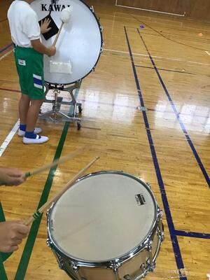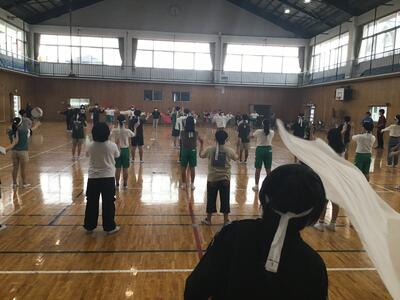 外でできない全体練習に替えて、体育館で応援の練習になりました。