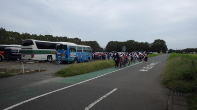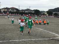 小雨が降る中の後半戦のスタートです。雨具を着ての応援、見学になります。
