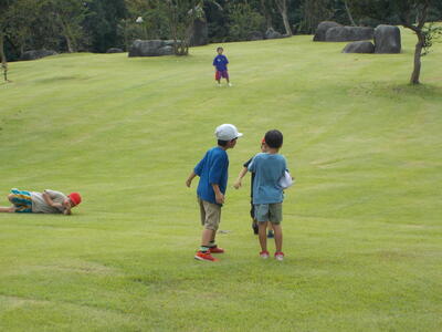 広いですねぇ。走るだけで楽しい場所ですが、いろいろな遊具も工夫次第でさらに楽しめます。