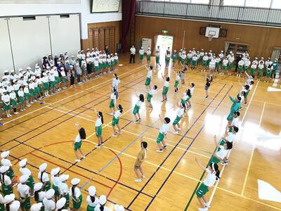 いったん離れ職員室に戻る途中、体育館からの元気な声に誘われて行ってみると、