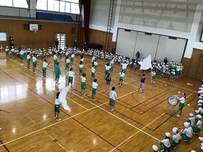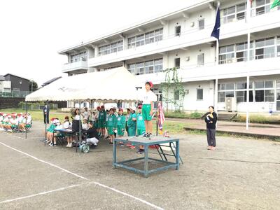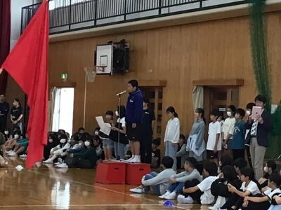 「今日の運動会は、皆さんが前向きに自分から活動して、みなさんの手で作り上げた運動会です。6年生はリーダーとして下級生をリードして、生き生きと活動しました。5年生も高学年としての責任をしっかりとはたしてくれました。その姿は、とても気持ちよく頼もしく感じられました。