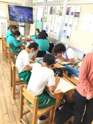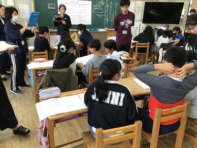 今日は、実習生自らが考えたシナリオで(学校では「学習指導案」と呼んでいます。)授業を行いました。