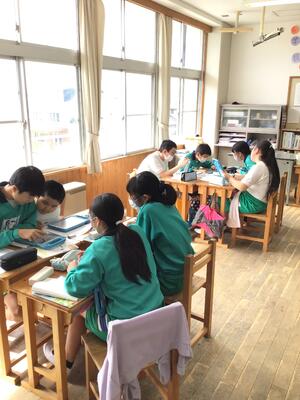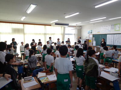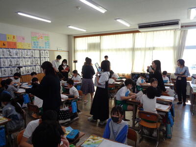 どんな様子でしょうか。今日は、4人のボランティアティーチャーが、いらっしゃっています。ありがとうございます。