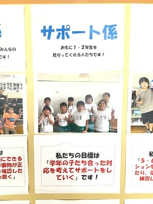 高学年は、それぞれの係が自分たちの目標に沿って仕事を考え実行することで、中・低学年もスローガンのように「深い絆」を大切に全力を出す中で、様々な力を伸ばし成長していってくれるでしょう。