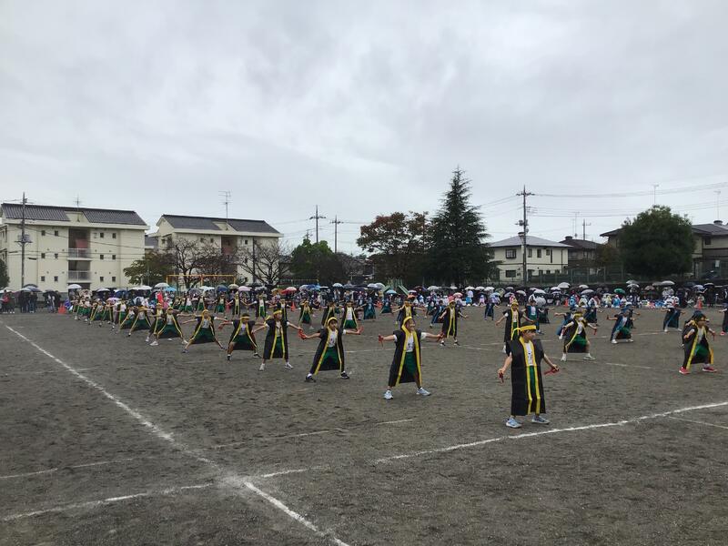 雨は、やんだり強くなったりを繰り返していました。「雨にも負けず」を体現する元気をどの学年も見せてくれましたが、子供たちの体調が心配なので、1,2年生は、学年の競技が終わった時点で、3年生以上は、競技終了を待ち教室にもどり着替えをしました。