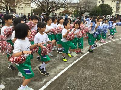 スポ少のパレードです。華やかなユニフォーム姿で、部ごとにパフォーマンスを行いました。
