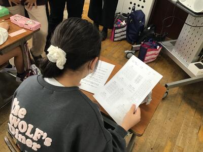 点字の作り方を考えたり、実際に紙に打ったりしながら、
