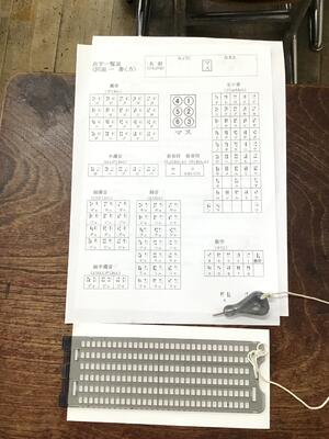 こちらが点字を作る道具です。体験用なのでちょっと小さめとのことですが、1つ1つ針(のようなもの)で打って作っていくのは驚きです。