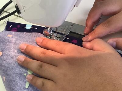 ランチマットを縫っているとの事でした。それぞれに自分で選んだデザインで、選び方にも個性がありますね。
