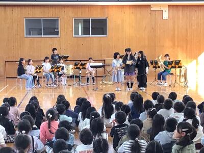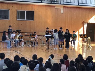 明後日、市文化センターにて鹿沼市小中学校合同音楽会が行われますが、みどり小からは、金管バンドのメンバーが出演します。それに先駆けて、校内で演奏会を行いました。