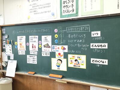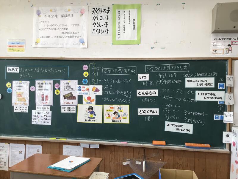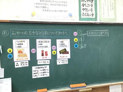 めあては、「おやつの上手なとり方について知ろう。」ということです。