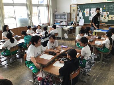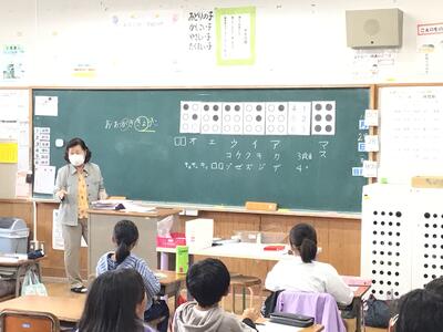 授業は、子供たちの理解を確認しながら丁寧に進められていきます。子供同士で教え合うミニ先生システムも効果的でした。