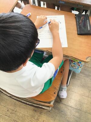 子供たちは、配られてすぐにワークシートに名前、今日のめあてなどが書き始められる切れの良さです。