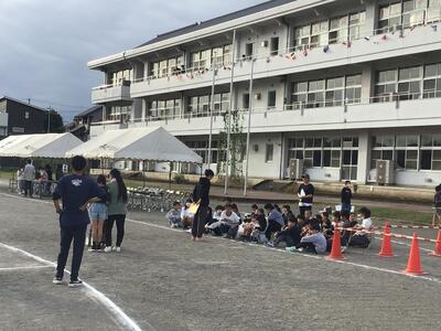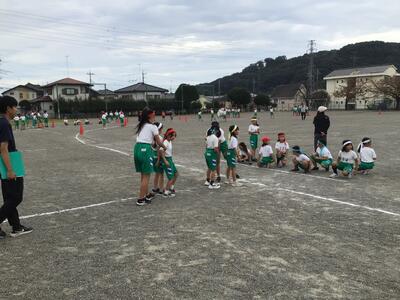 こちらの写真は、リレーの練習を見ている低学年の子供たちです。「推し」の上級生がいるのでしょうか。時折歓声が上がっていました。