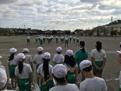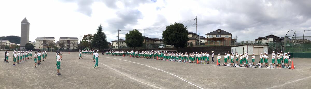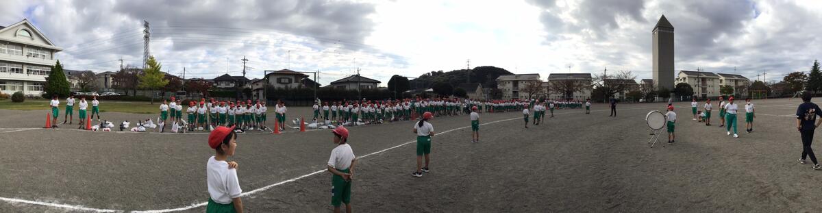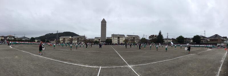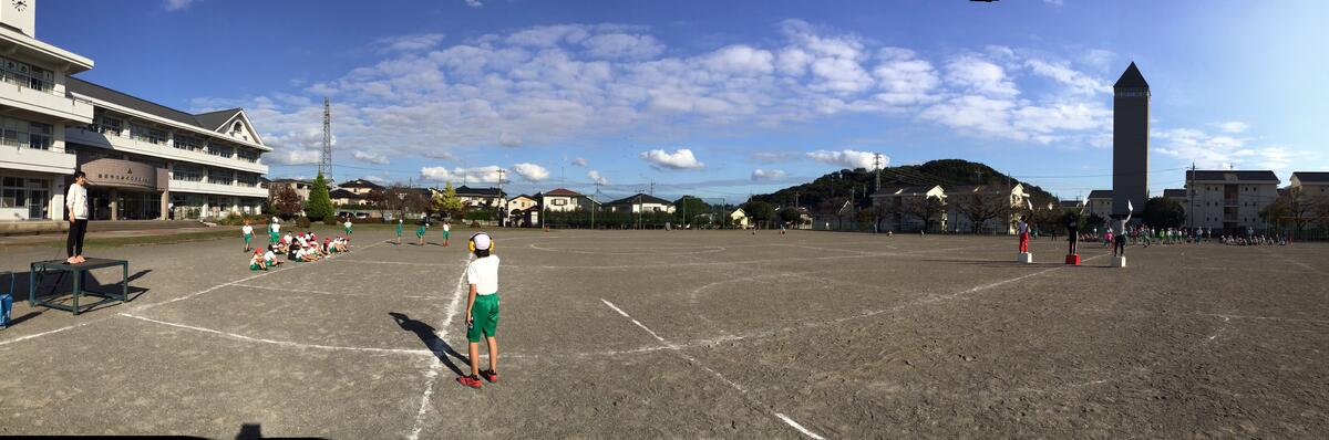 広い校庭、1チーム200人以上の人数だとどうしても人が点みたいになってしまいますが、横長に撮るということを覚えました。(普通に撮ると下の写真のような感じです。)