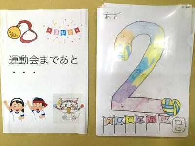 ICTクラブのみなさんが、運動会の宣伝ポスターをタブレットパソコンで作成したとの事。おしゃれな活字や絵柄でどれも素敵です。