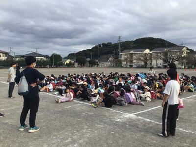 4年生から1年生の皆さんも演技、競技に一生懸命、応援にも一生懸命の素晴らしい姿を見せてくれました。スローガン通りに「深い絆」ができ「全力を尽くせた」運動会だったと思います。皆さんがそういう姿を見せてくれたことがとてもうれしく、とても感動しています・・・」(一部抜粋)