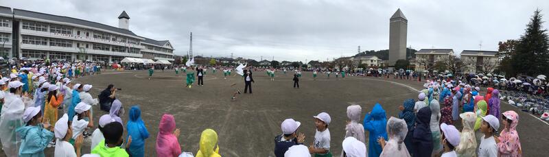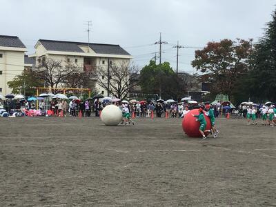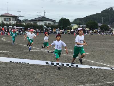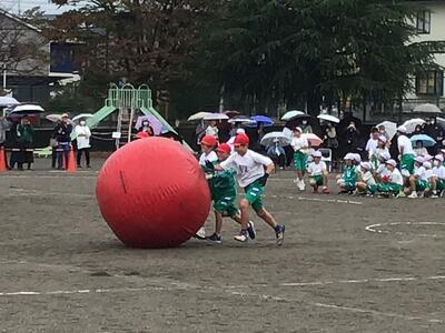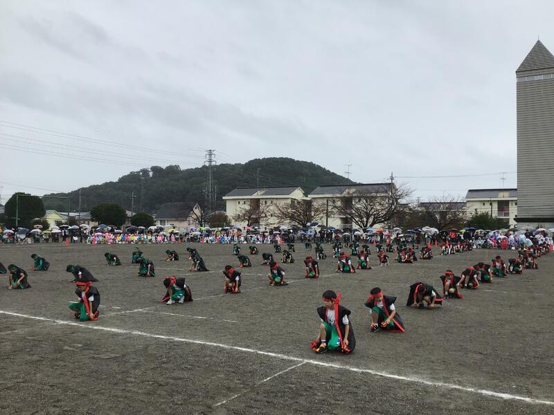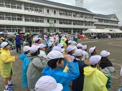 雨は、やんだり強くなったりを繰り返していました。「雨にも負けず」を体現する元気をどの学年も見せてくれましたが、子供たちの体調が心配なので、1,2年生は、学年の競技が終わった時点で、3年生以上は、競技終了を待ち教室にもどり着替えをしました。