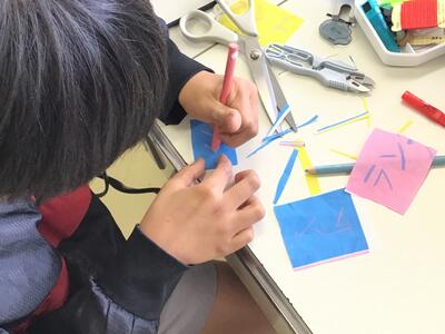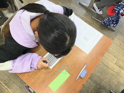 点字の作り方を考えたり、実際に紙に打ったりしながら、