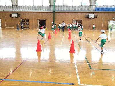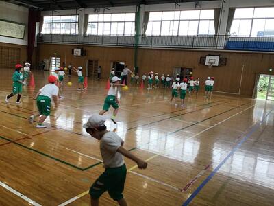 3年生が元気に活動中です。走って、ボールを回して、走って、楽しそうです。