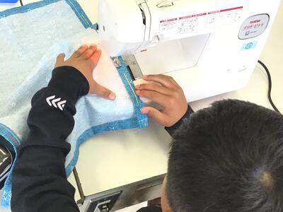 ランチマットを縫っているとの事でした。それぞれに自分で選んだデザインで、選び方にも個性がありますね。