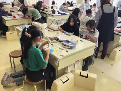 さて、家庭科室に戻ってみると、ミシン作業が終わってちょっとリラックスした雰囲気です。