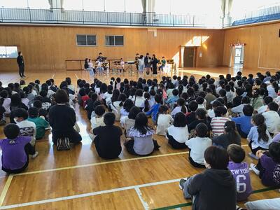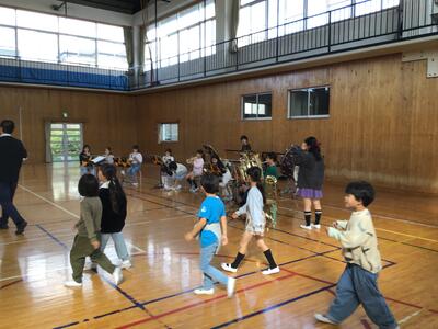 軽快、時には重厚なパーカッション(締太鼓を含む)の音色から始まり、トランペット類のリズミカルな演奏が連なり、大物金管楽器の重厚な響き、(楽器に関する語彙の欠落はご容赦ください)校長のひいき目を抜いたとしても素晴らしい演奏でした。小学生ってこんな音をだせるんだなぁと感動しました。