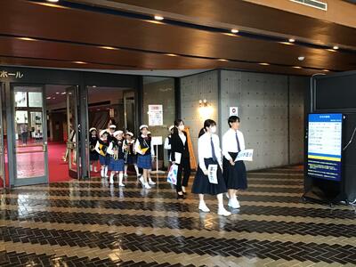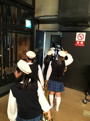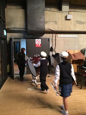 こちらは、本番前のリハーサルに向かう途中です。演奏会場になる大ホールに入る前に、小ホールでの練習ができます。