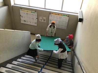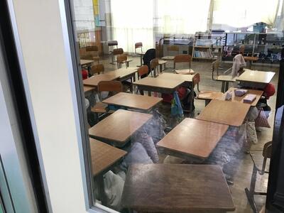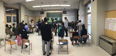 職員室で竜巻発生の放送が行われてから、すぐに教室の方に行ってみると避難行動が完了していました。なかなか素早い行動ができました。