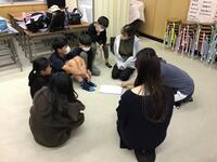 自分にとってどういう体験だったかをグループで振り返ります。心も体もリラックスしたためか、和やかで穏やかな時間が流れました。
