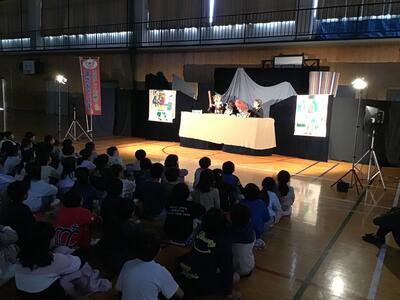 1、2年生のところに「まざあぐうす」の皆さんが来てくれました。体育館でやっているという事なのでいってみます。