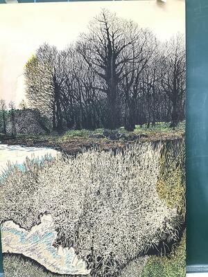 木版画の版木なんです。制作途中とのことですが、こんな素敵な版画を作る先生が4年生の図工の授業に登場です。すごい❗️ですね。