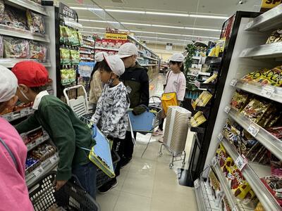 スーパーマーケットの仕事のj工夫について、自分で見つけて、その意味や便利さを自分たちで考えていきます。もちろん、お店の方にお話から学ぶこともたくさんあります。