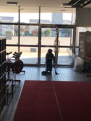 体育館入り口にはのぼりが立っていて、もうすでに楽しそうです。