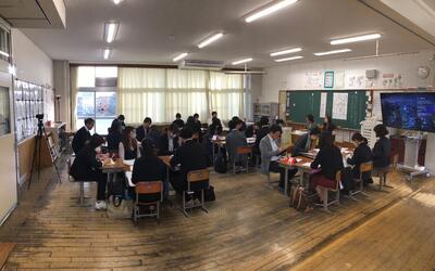 ZOOMを使っての表彰中継なので、教室の様子は分からなかったのですが、どうやらこんな感じらしいですね。