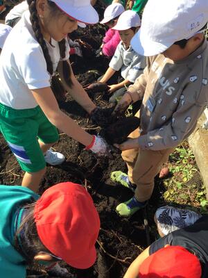 春先に一本ずつ埋めたサツマイモの茎から大きなサツマイモができるなんて、不思議ですね。