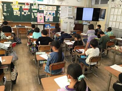 ( 6年生、3学級が1時間ずつの授業ですが、写真は混ざっています。)