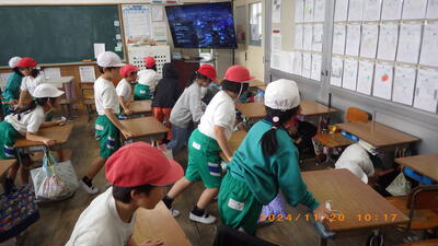 訓練をすることで、いざ非常時という時に、素早く危機回避行動ができるようになります。こういうものは、本気でやることが大切!また、自然災害はいつどこで発生するか分かりません。子供たちが自分の身を守る行動ができるよう、ご家庭でも話題にしていただければと思います。